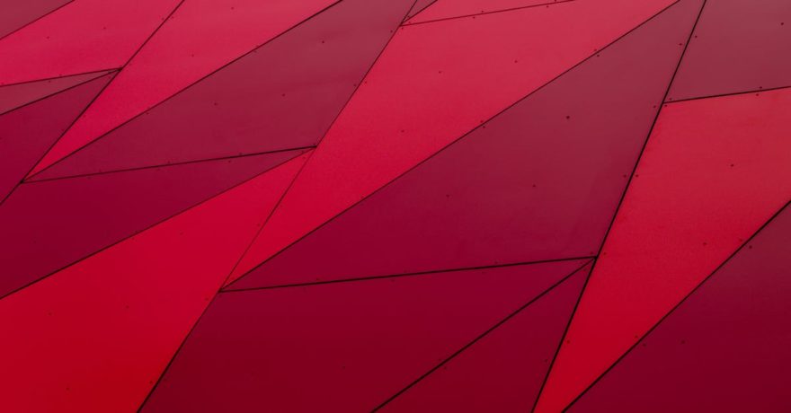 Top view of beautifully wrapped holiday gifts with red and brown ribbons on a vibrant red background.